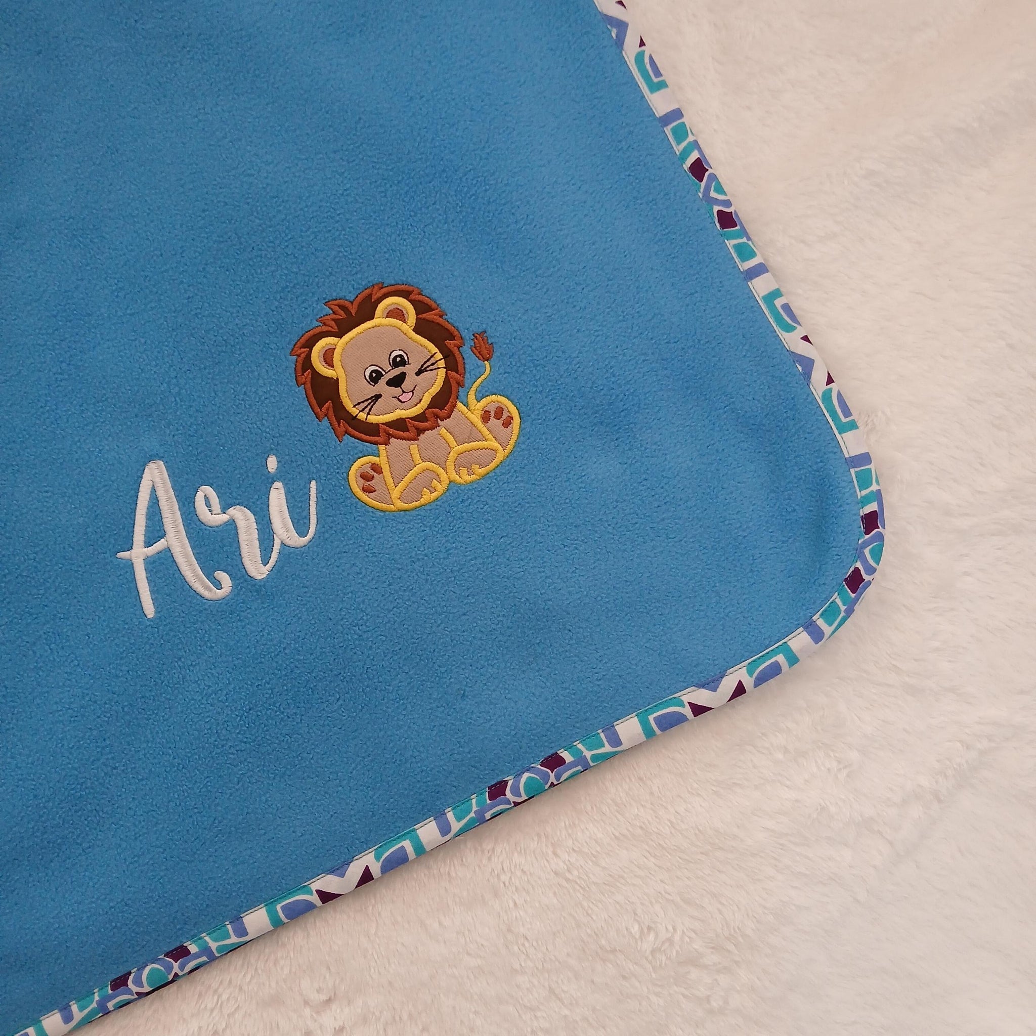 - Personalisation: the name Ari embroidered in white thread with a lion design.