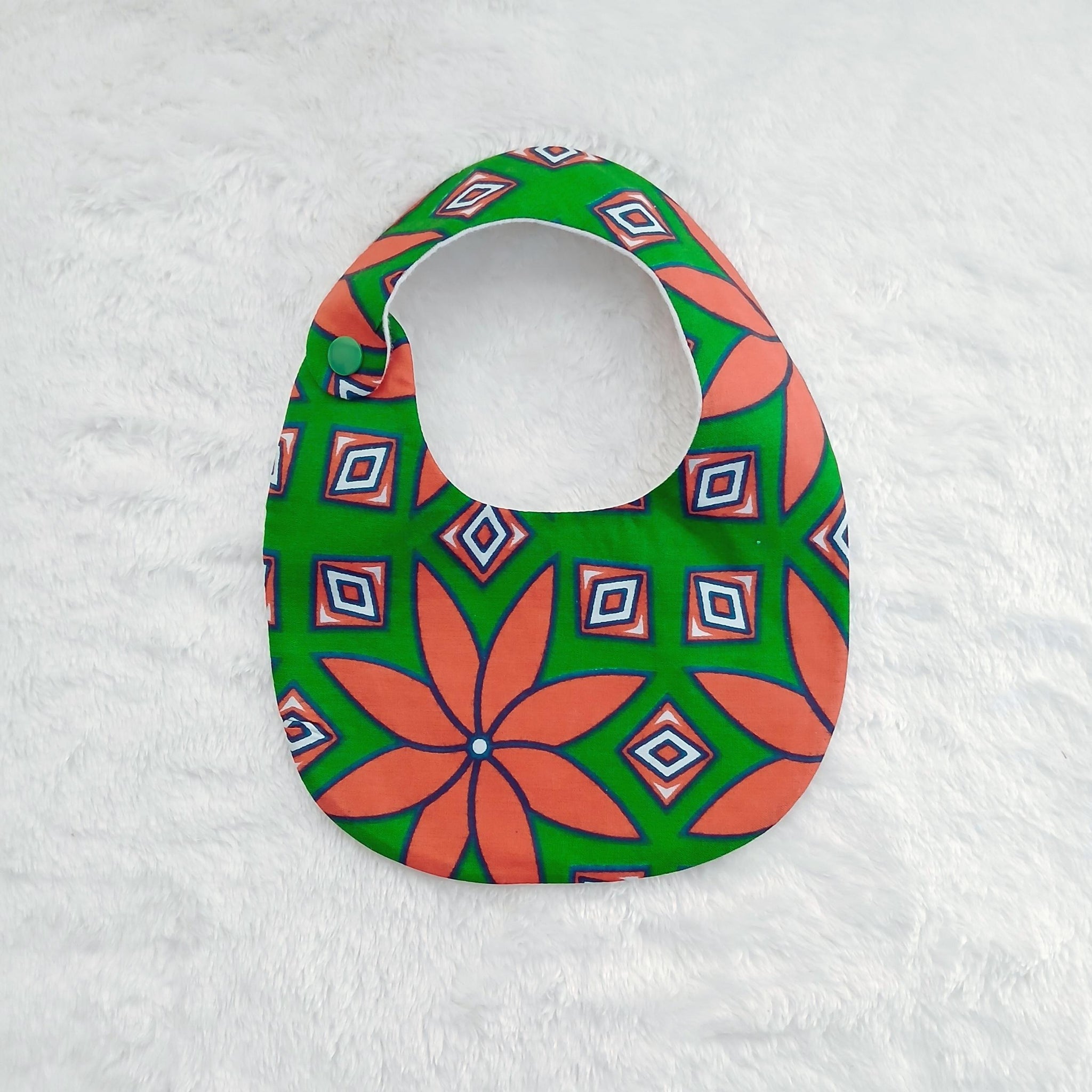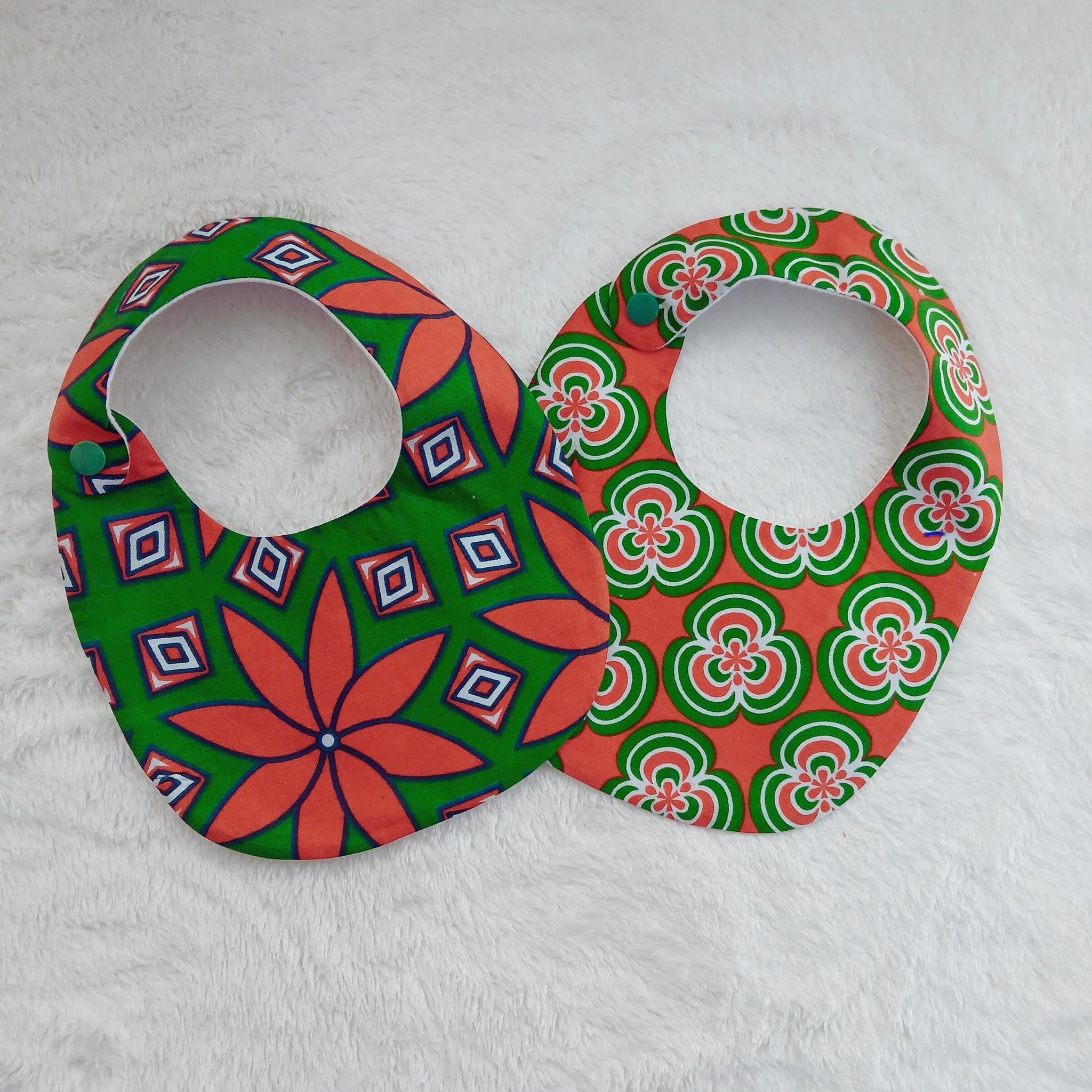 Made from absorbent cotton and vibrant khanga fabric, they keep baby clean while adding a touch of colour to every outfit.